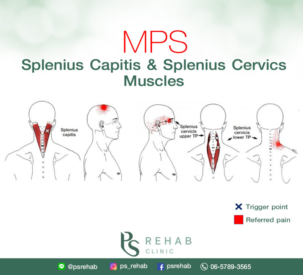 Trigger point ในกล้ามเนื้อ Splenius Capitis จะทำให้มีอาการปวดร้าวไปกลางศีรษะ