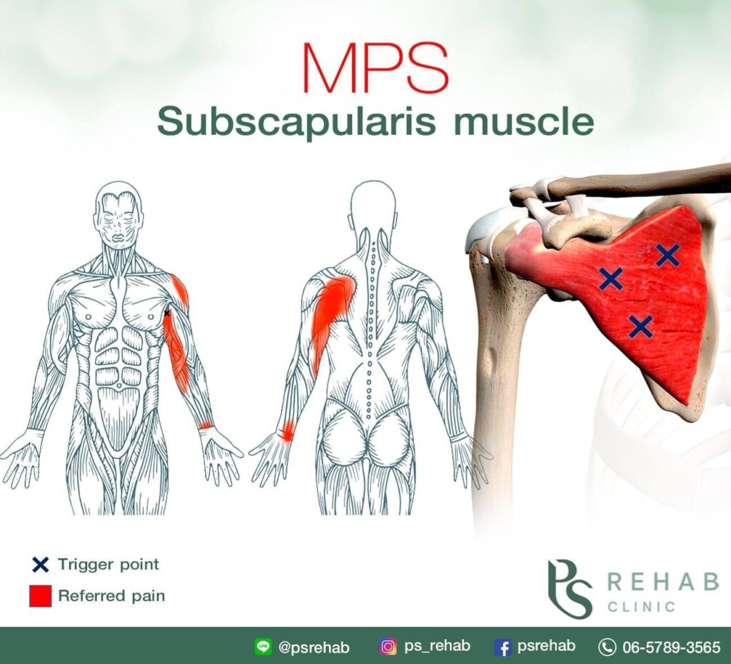 หากมี Trigger point ในกล้ามเนื้อมัดนี้จะทำให้ผู้ป่วยกางแขนและหมุนแขนออกด้านนอกได้ลำบาก ทำให้มีอาการไหล่ติด (Frozen Shoulder) หามีอาการรุนแรงจะทำให้มีอาการปวดร้าวไปยังบริเวณด้านหลังของหัวไหล่ ข้อมือ บริเวณสะบักและท้องแขน