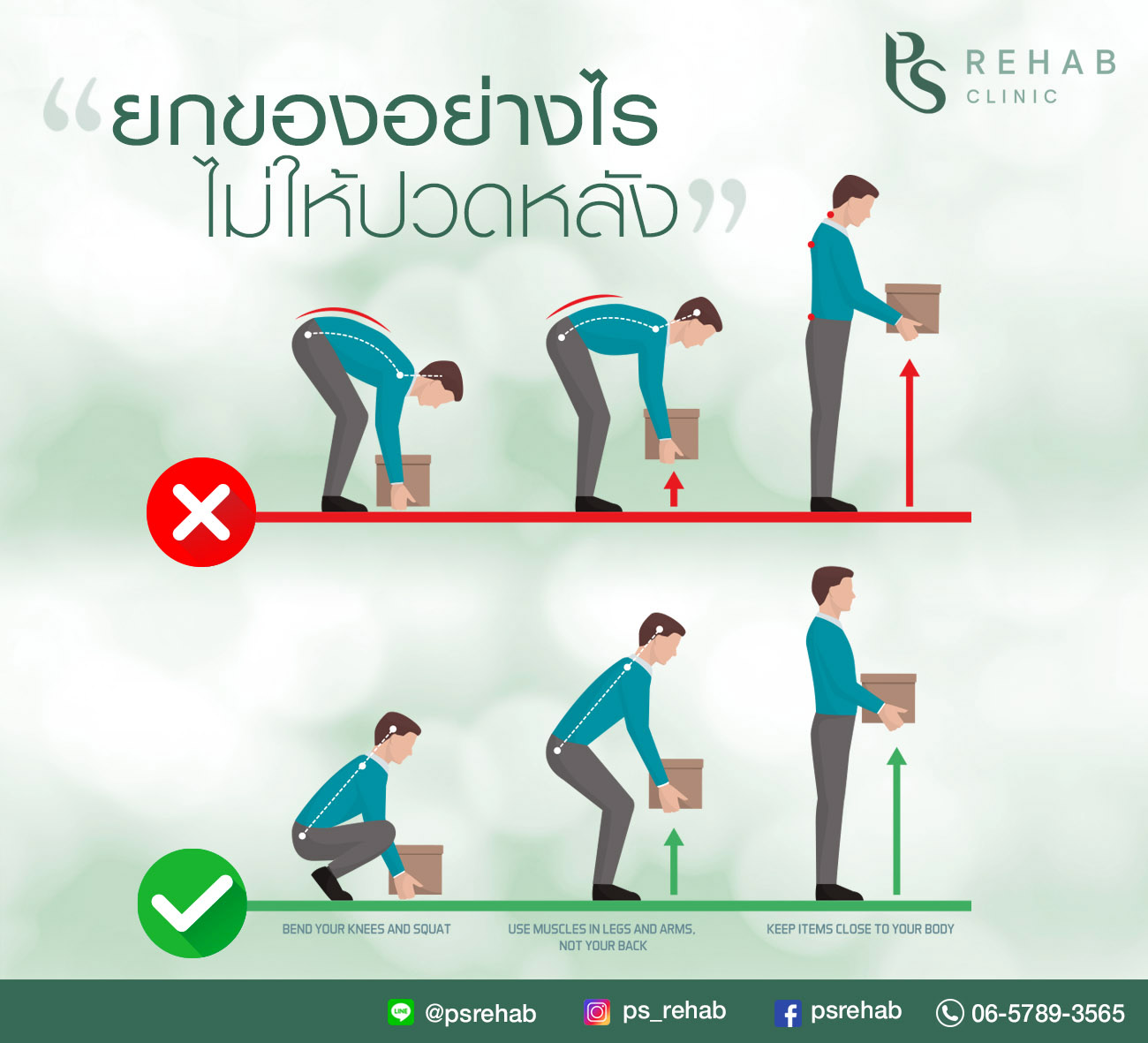 การยกที่ไม่ถูกต้อง(ภาพบน) อาจะทำให้เกิดผลกระทบต่อกระดูสันหลัง ทำให้ปวดหลังหรือเป็นโรค #หมอนรองกระดูกทับเส้นประสาทได้ วันนี้เรามาดูกันว่า "ยกของอย่างไร ไม่ให้ปวดหลัง"