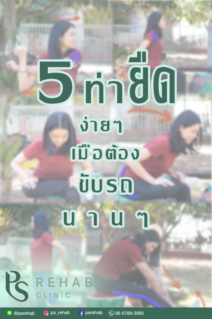 ความเมื่อย ล้า ปวด บริเวณต่างๆก็จะตามมา เพื่อให้กล้ามเนื้อผ่อนคลาย และป้องกันอาการปวด ที่จะเกิดขึ้นได้ ระหว่างพักรถ เราสามารถยืดกล้ามเนื้อมัดต่างๆได้ วันนี้ PS Rehab Clinic ขอเสนอ 5 ท่ายืดง่ายๆ เมื่อต้องขับรถนานๆ ไปดูกันเลย ว่ามีท่าอะไรบ้าง