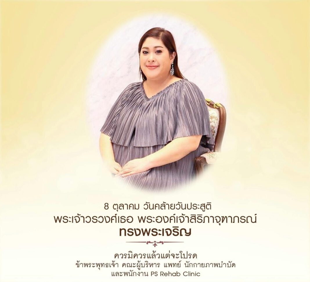 8 ตุลาคม วันคล้ายวันประสูติ พระเจ้าวรวงศ์เธอ พระองค์เจ้าสิริภาจุฑาภรณ์ ทรงพระเจ… 8 ตุลาคม วันคล้ายวันประสูติ พระเจ้าวรวงศ์เธอ พระองค์เจ้าสิริภาจุฑาภรณ์ ทรงพระเจริญ ข้าพระพุทธเจ้า คณะผู้บริหาร แพทย์ นักกายภาพบำบัด และพนักงาน Ps Rehab Clinic